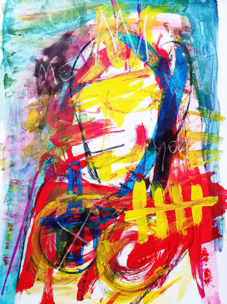 IT DEPENDS - Uli Hubert . Mixedmedia in Acryl, 100x80 cm, 2025