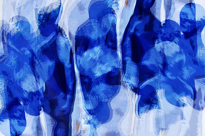 BLUE MEN TALKING - Axel Bussmeyer . International Color Award Winner 2025 - Giclée Druck, signierte, limitierte Edition von 8